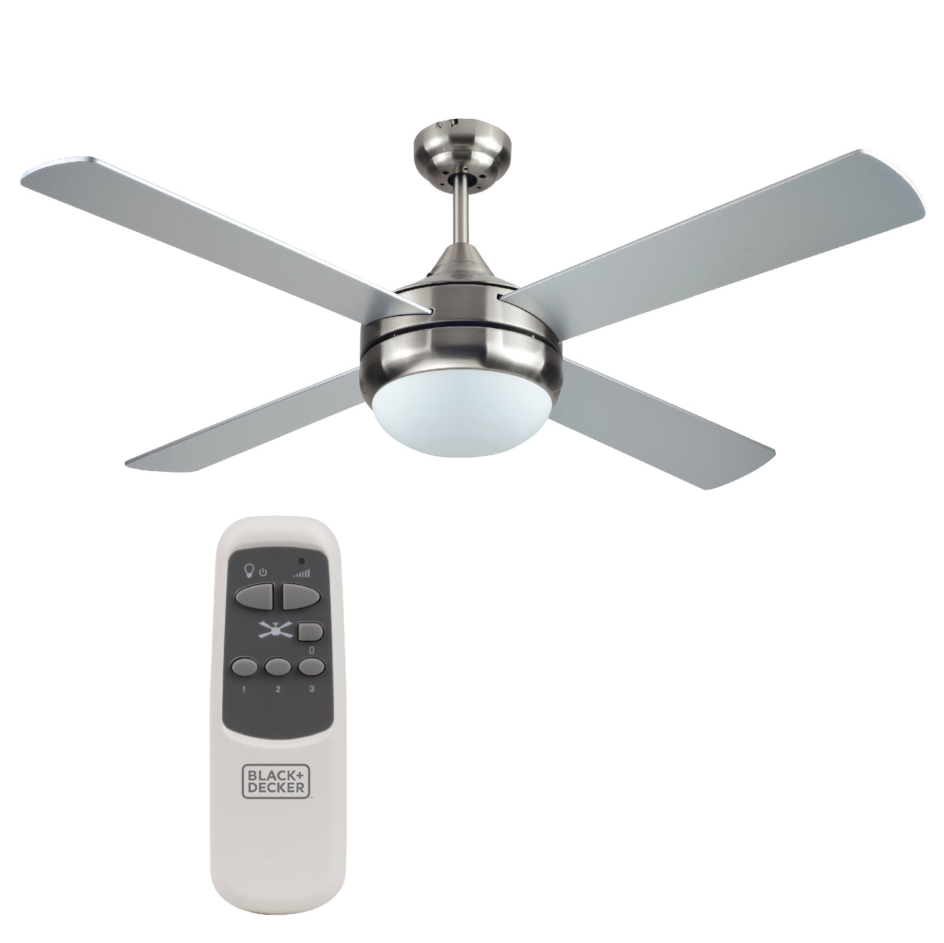 BLACK+DECKER Ceiling Fan 52 in. with 4 Reversible Blades, Silver