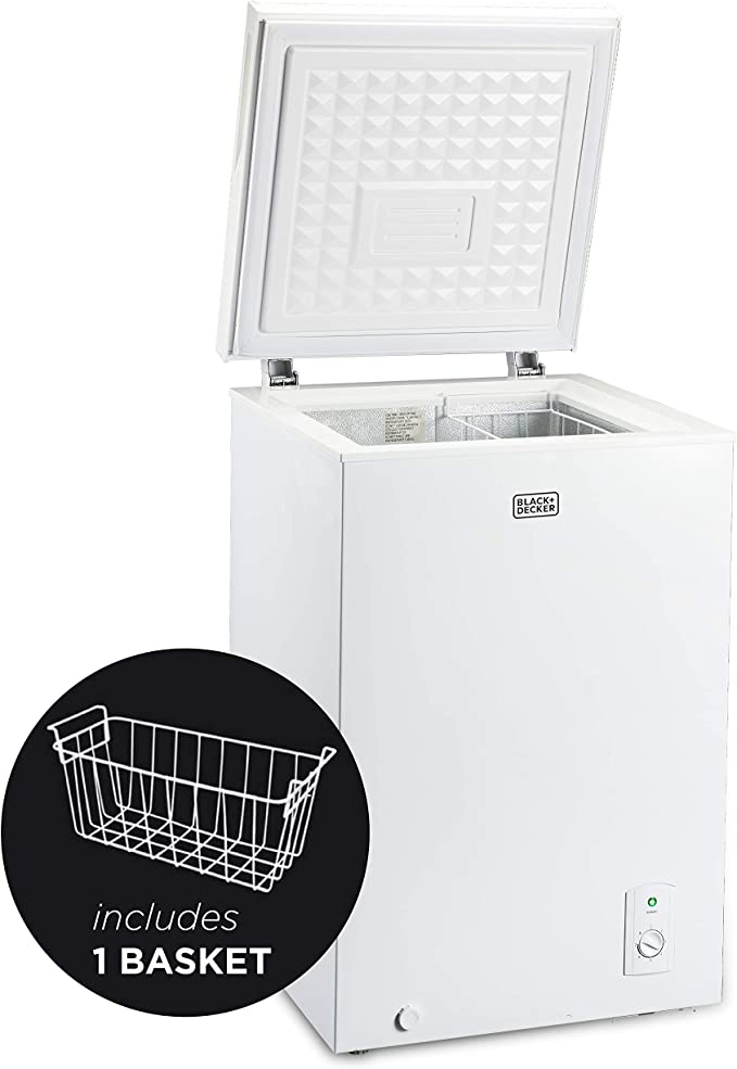 HUGE CAPACITY: This BLACK+DECKER 3.5 cu. ft. chest freezer can hold up to 122 lbs. of frozen food. Easily store cherished recipes, household staples and savored dishes with this outstanding freezer chest.