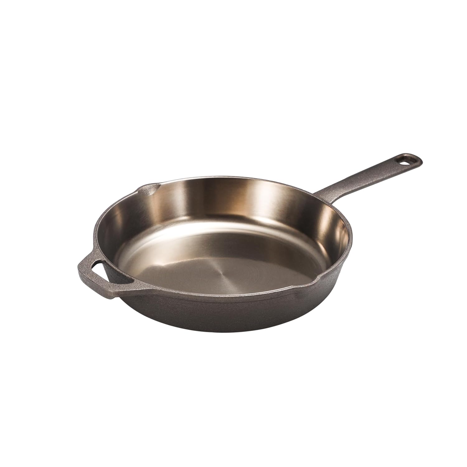 BLACK+DECKER 10.25" Cast Iron Skillet, Pre-Seasoned Frying Pan with Bronze Finish, Polished Interior, Cast Iron Pan Works on All Cooktops Including Induction, BDK201BR, Bronze