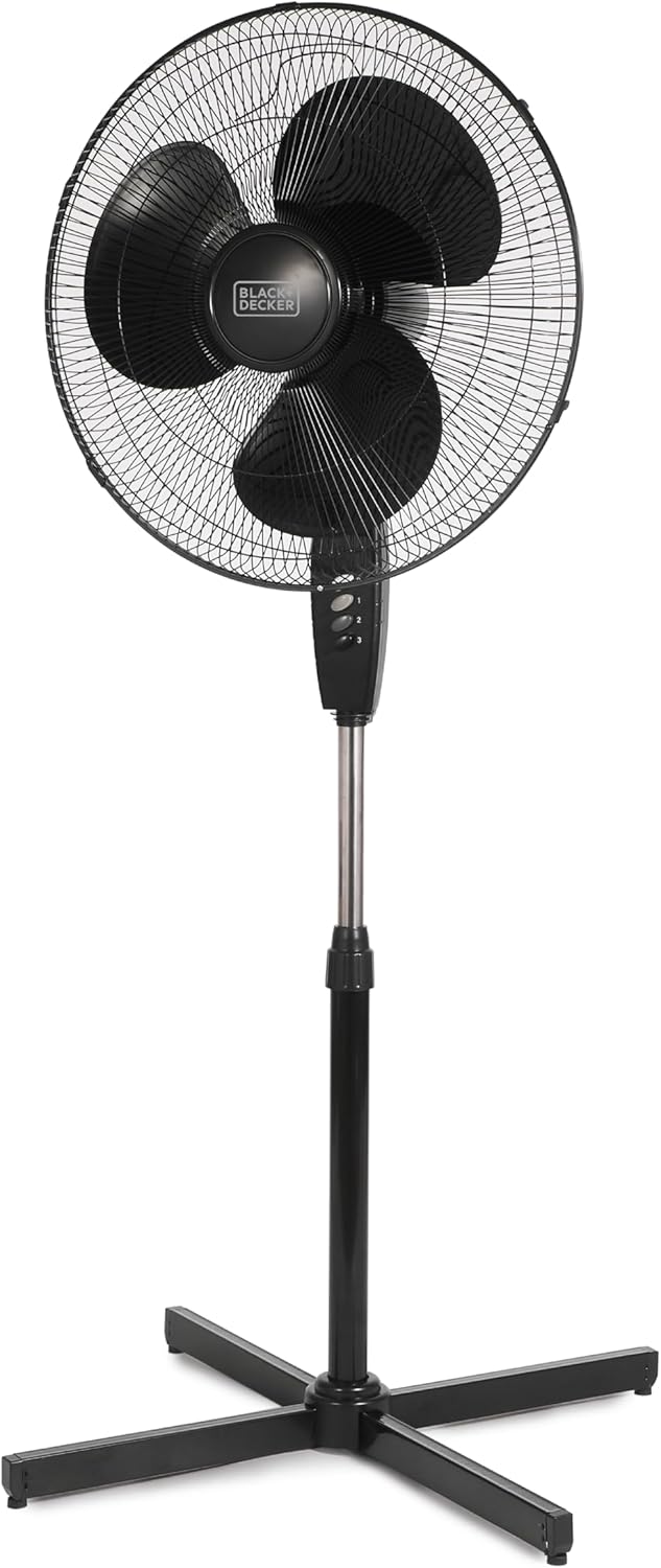 BLACK+DECKER 18-Inch Pedestal Fan, BFP18SXB, Oscillating Fan for Home and Office, Standing Fan with 3 Speed Settings, Height Adjustable with Adjustable Head Tilt, Black