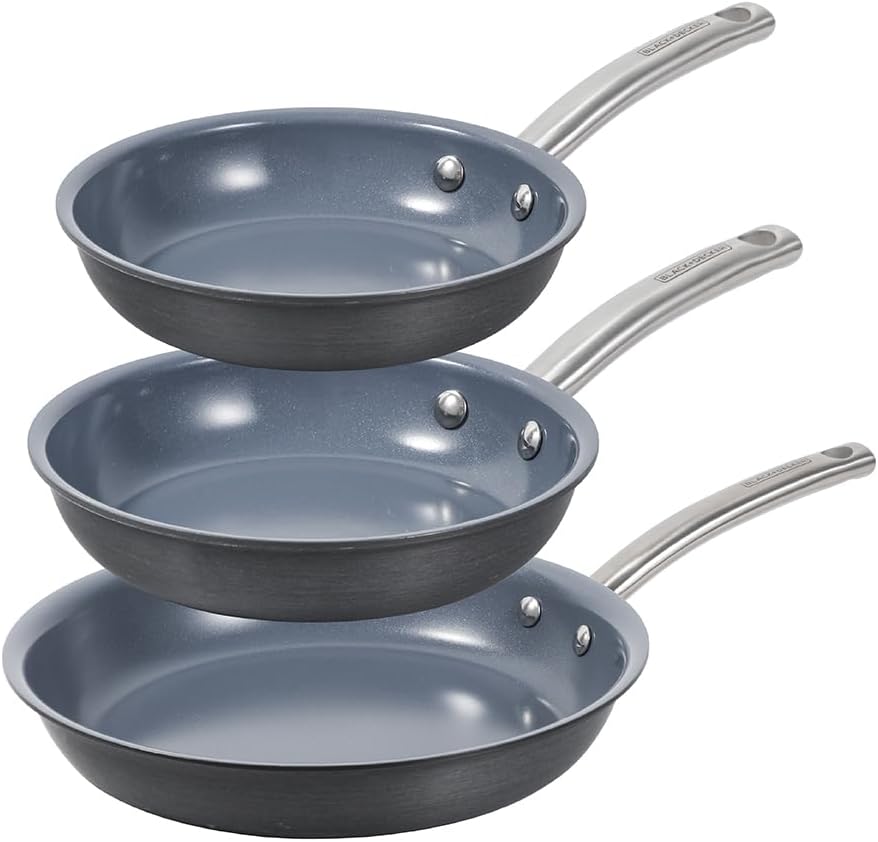 BLACK+DECKER 3-Piece Ceramic Hard Anodized Aluminum Skillet Set, Frying Pan Set with Ceramic Non-Stick Coating