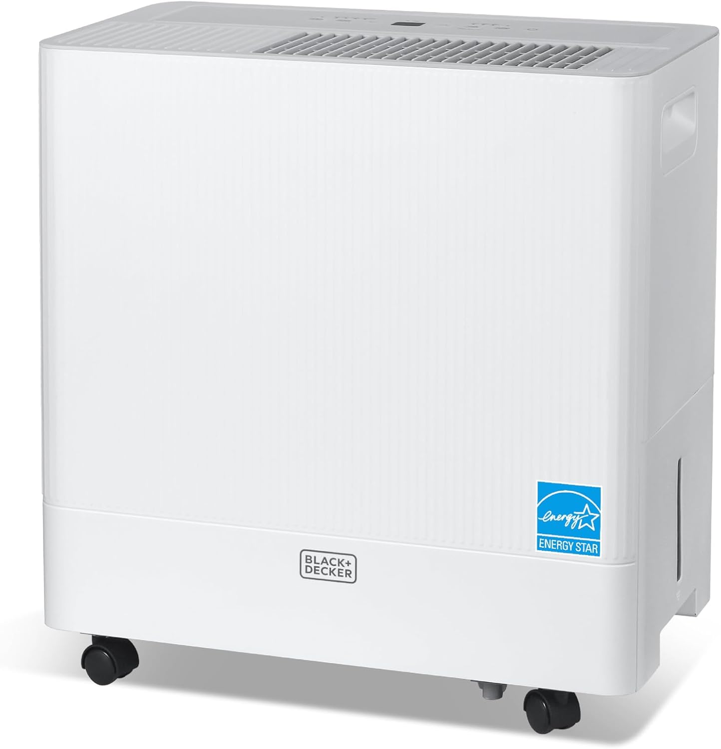 BLACK+DECKER 50-Pint Portable Dehumidifier, Dehumidifier for Home up to 4500 Sq. Ft. Coverage, ENERGY STAR Certified, For Basement and Large Spaces, BD50MWSA, White