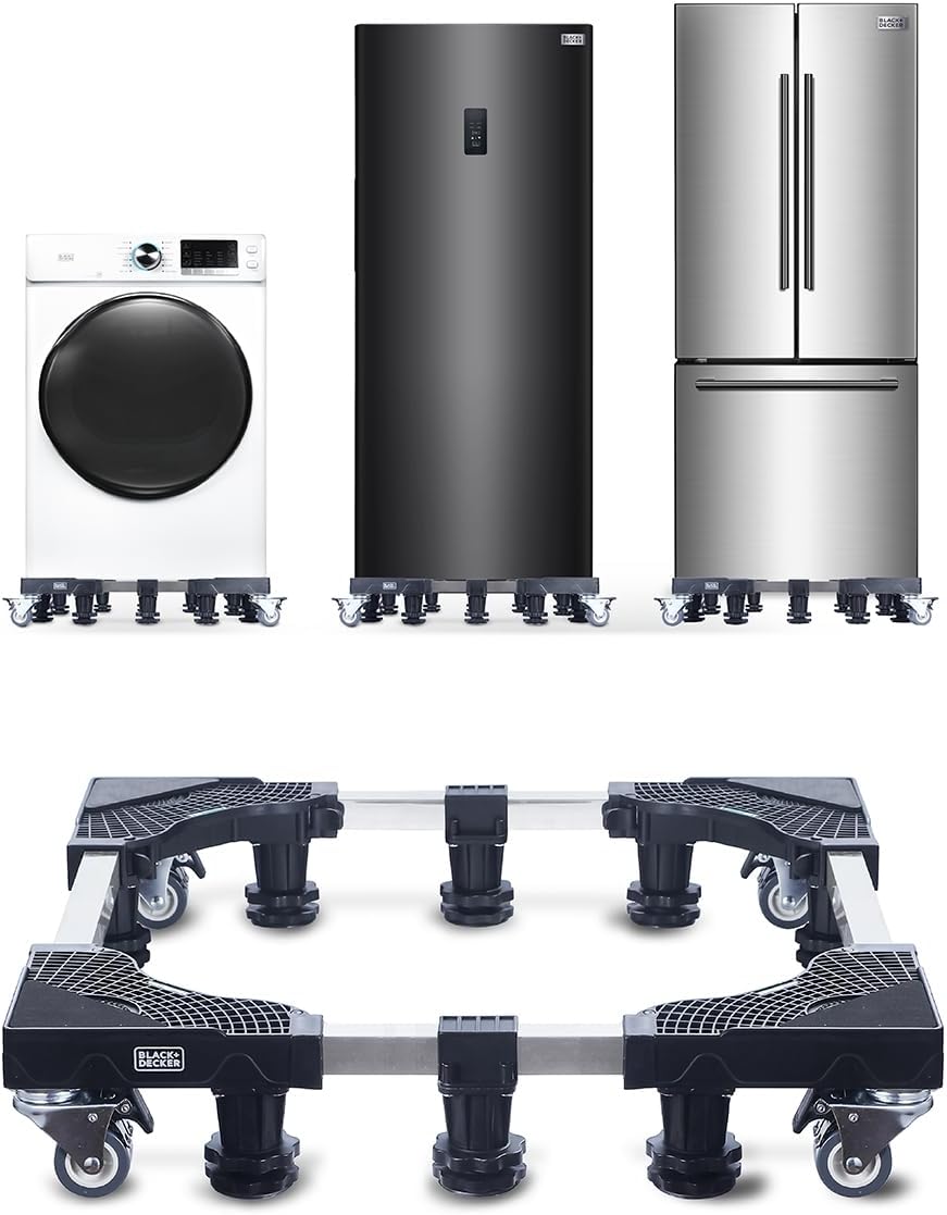 BLACK+DECKER Full-Size Multi-Functional Stand with Wheels, 4"H Major Appliance Pedestal Dolly Stand with Anti Vibration Pads, Supports 700 lbs., Adjustable 24-31", Stainless-Steel Frame, BWS24, Black