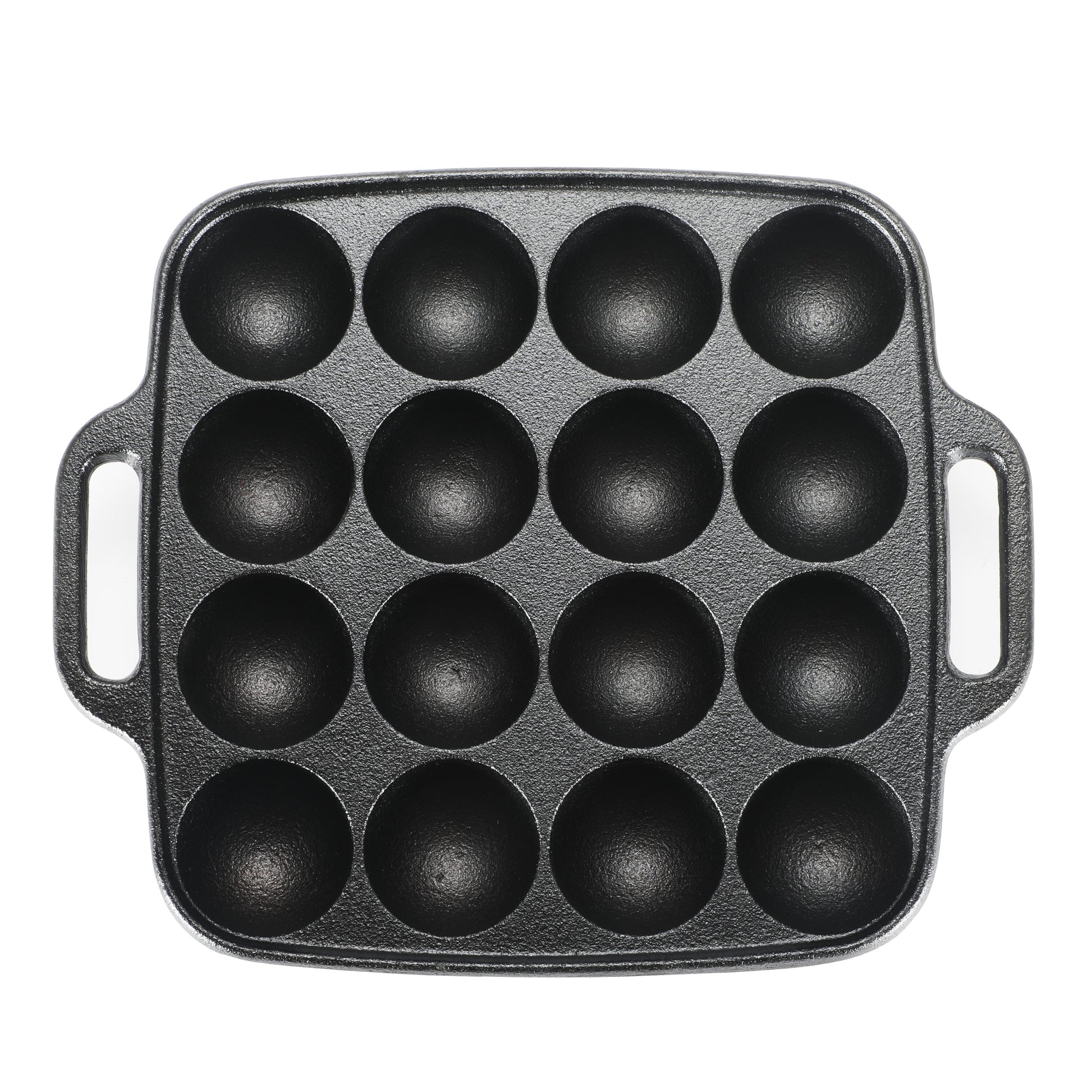 Commercial CHEF Cast Iron Cookware Aebleskiver Pan with 16 Cake Pop Mold Openings, Cast Iron Donut Pan for Baking with Handles, Enameled Cast Iron with Even Heat Retention