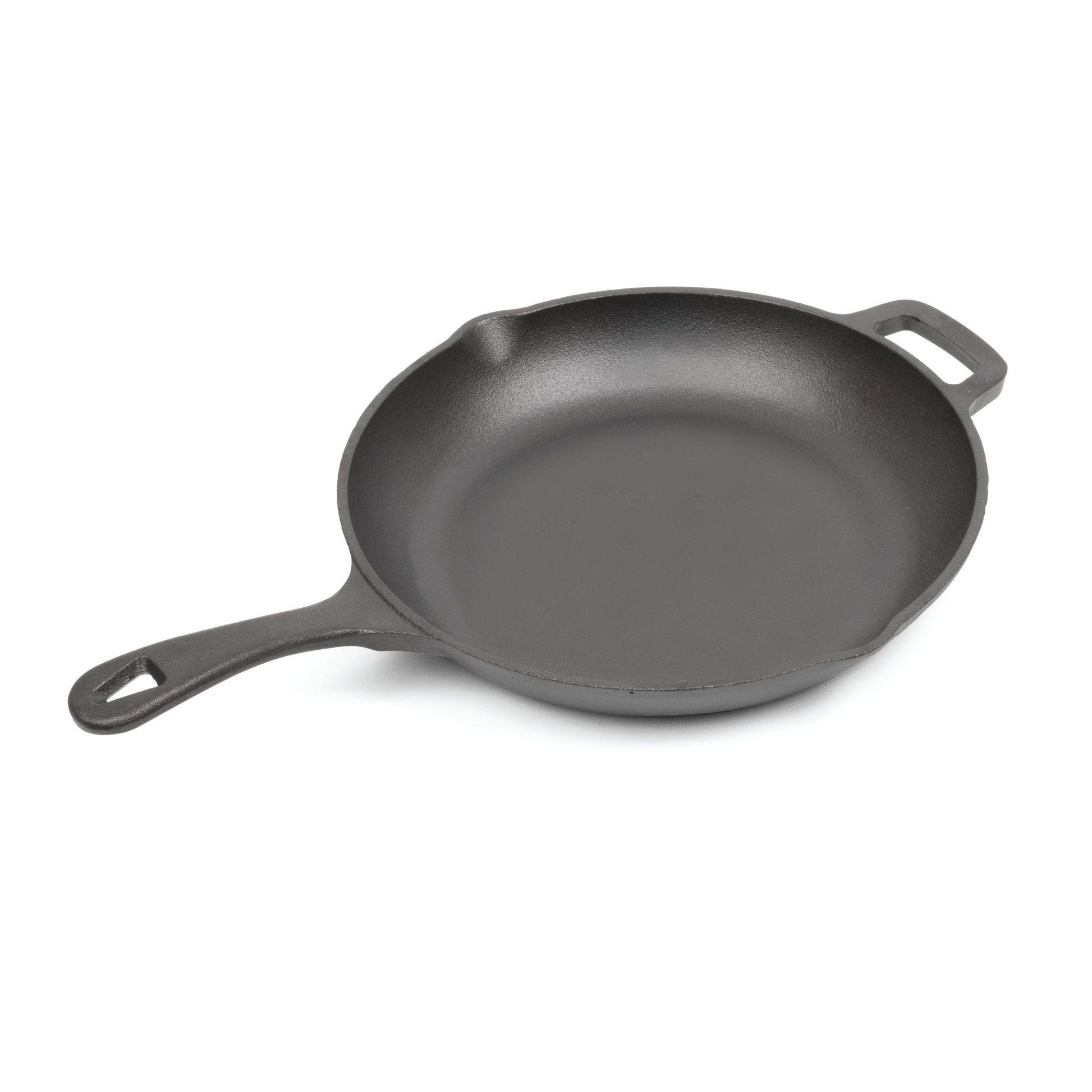 This COMMERCIAL CHEF round cast iron skillet 10.†is a perfect addition to your kitchen. Its easy cooking surface means you can cook meals seamlessly and this cast iron round skillet comes pre-seasoned to ensure optimal performance. Even heat distribution on this pre seasoned cast iron skillet guarantees heat retention for your delectable dishes the whole family will savor. Use outdoors on your grill or open fire as well as inside on your stovetop or oven. This cast iron cookware (14.3†x 10.4†x 1.9â€) has dual pour spout ends, allowing for easy disposal of fats and oils as well as marinating. Simply handwash with gentle detergent and dry thoroughly with a towel. Hang easily on your kitchen wall or ceiling with convenient handle holes. This COMMERCIAL CHEF round cast iron skillet (4.16 lbs.) is bound to be a staple for your weeknight—and weekend recipes!